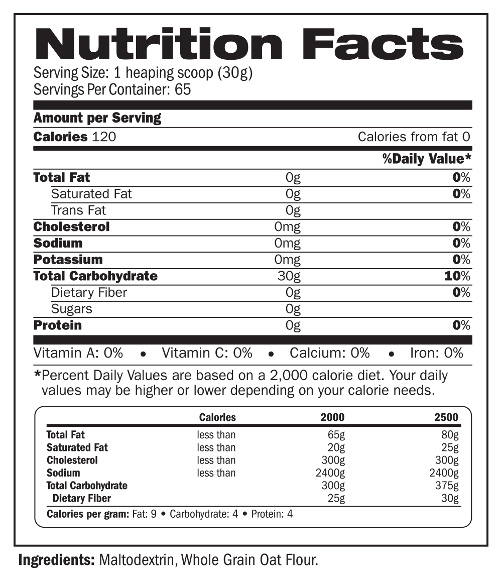 NU-TEK CARB COMPLEX™ is a sugar-free carbohydrate blend utilizing maltodextrin and whole grain oat flour.