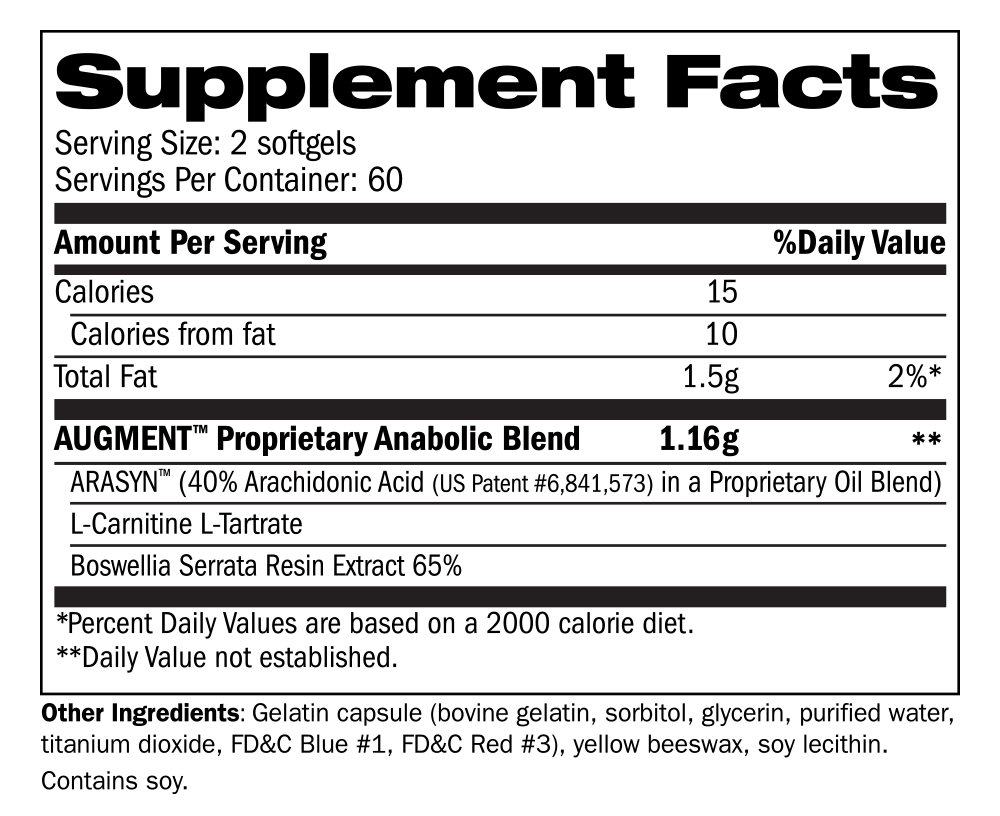 AUGMENT™ is formulated with ARASYN™, a patented form of Arachidonic Acid founded by World-Renowned Anabolic Research Scientist William Llewellyn.
