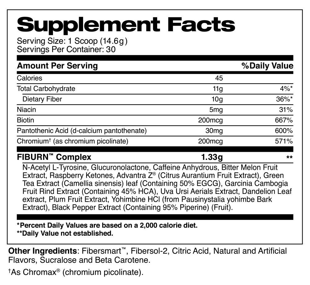 WHAT IS IT? FIBURN™ is an incredible tasting, extreme-energy based, advanced high-fiber thermogenic formula designed to take your workouts to new heights!